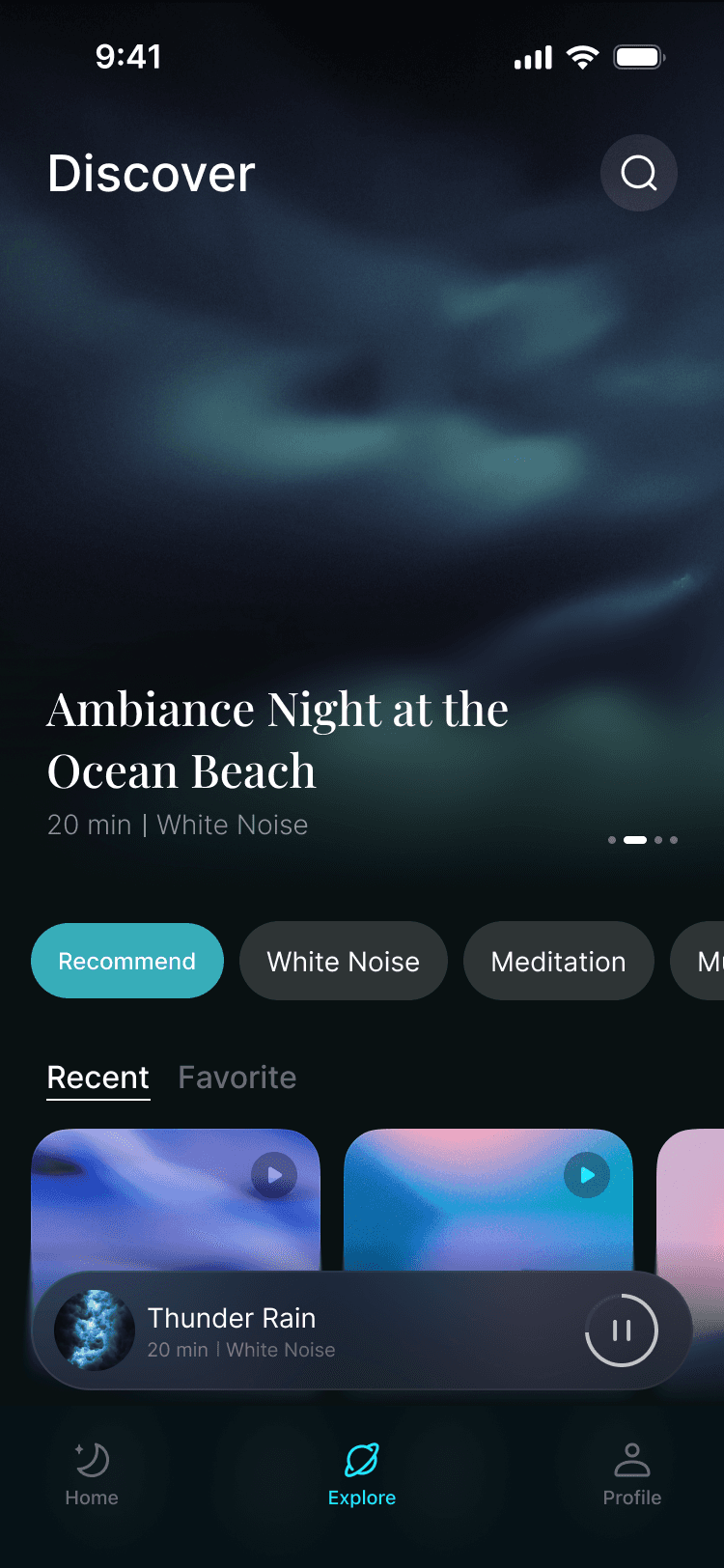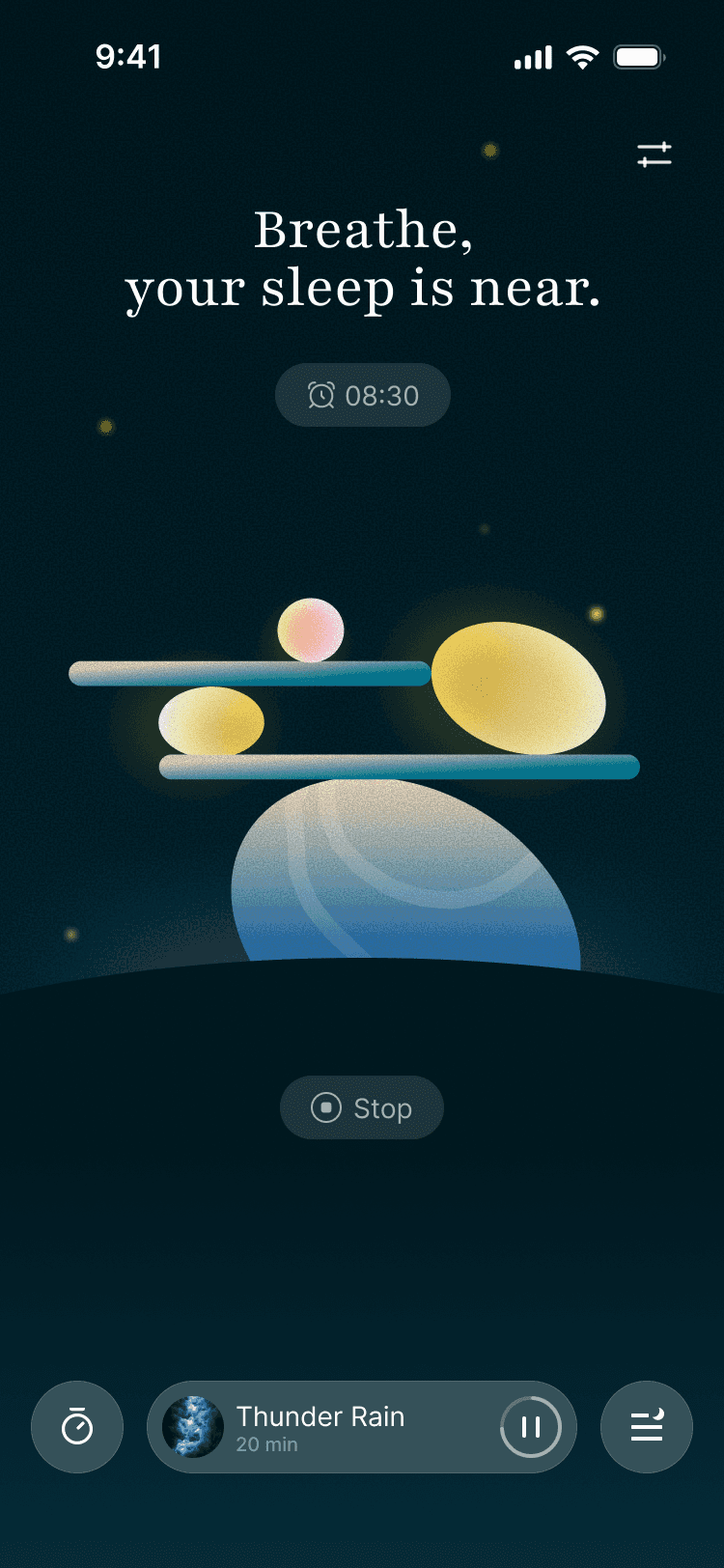 With gentle reminders, a night clock, and sleep science-backed audios, Chiu helps your body slow down, mind settle, and get up naturally.